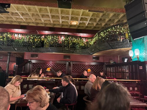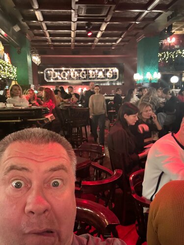 Был в баре на стендап концерте Вид странный как старый или олдовый дизайн Выбор цветов обоев столов стульев - все под старину Официанты медленные Работник гардероба боевой пенсионер но очень медленный Народ пил и кушал от всего сердца Пиво пили прямо ведрами
