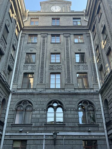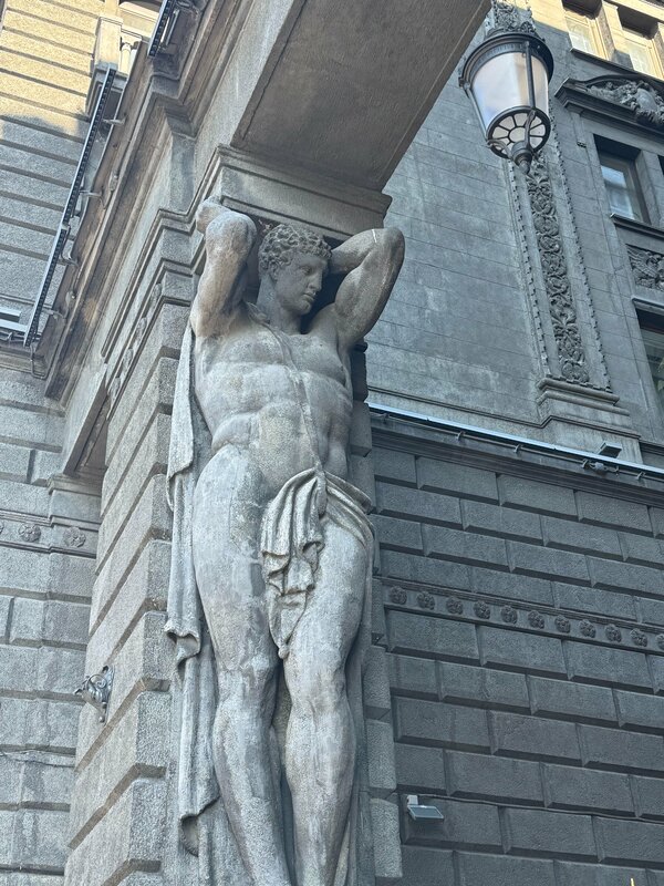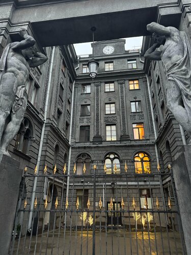 Смотрится мрачновато и очень по имперски Как будто очень дорогая генеральская казарма Внутрь нас не пустили Вид с улицы на скульптуры и подъезд