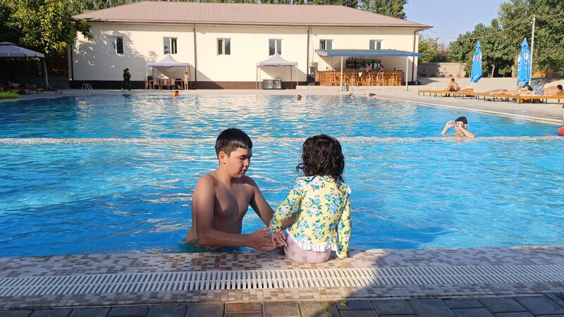 Отличный бассейн. Не многолюдно. Вода чистая без запаха хлора. Раздевалка тоже хорошая, большая. Есть парковка, и мест много. Лежаки зонтики, тапчаны все есть. Есть даже напитки и прям там готовят свежие шашлыки. Единственный минус для нас, что там есть алкоголь.