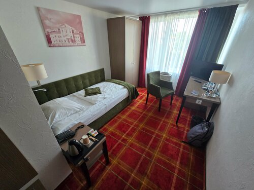 Расположение в центре города, стильный свежий ремонт, приветливый персонал. Теперь о минусах: Завтрак слабоват, недостаёт мясных блюд, фактически это только варёные сосиски и нарезки, обычно в гостиницах 3* есть ещё мясные тефтели или что-то подобное. Я жил 4 дня и все дни завтрак был абсолютно одинаковый. В номере есть чайник, его санитарное состояние вы можете увидеть на фото. Я попросил на ресепшене решить этот вопрос, чайник попытались почистить, соскоблили накипь со дна, но она осталась на стенках и её можно соскрести подушечкой пальца, даже страшно представить, какой был бы чай из этого чайника. Кровати высокие, но это несколько очевидно старых матросов один на другом, и ты проваливаешься на десяток сантиметров. Через две ночи проживания горничная перестала заправлять кровать несмотря на то, что простынь вылезли из-под матраса и просто лежала поверх ничем не закреплённая.