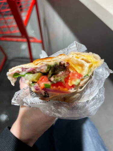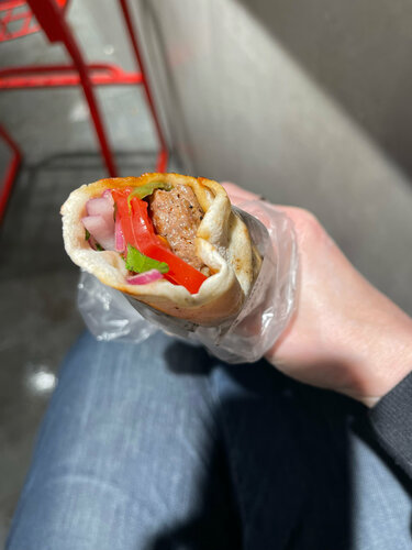 Огонь. Я случайно попала на тест нового блюда кюфта, если честно, не ела раньше такого. Мне предложили, согласилась и не пожалела. Это очень вкусно! Говядина чуть пикантная, салат, помидорка, огурчик, чеддер (может что-то ещё) , а пита хрустящая мммм. Молодцы, ребят, буду заезжать к вам💯