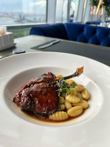 Вид. Это все. Меню звучит интересно, но на самом деле все обычно. Не сказали бы что совсем невкусно, но ничего особенного. Соус в цезаре состоял будто только из уксуса, невозможно было кушать. Вторые блюда хороши, но также просто нормально. Обслуживание показалось странным, не очень вежливый официант. Отмечали день рождения. При бронировании обещали поздравление и тортик. В итоге официант просто сфотографировала паспорт и куда-то пропала. На наши просьбы ее позвать не отвечали, так что ушли не дождавшись поздравления. Так что сходить один разок насладиться красивым видом можно, но это не то место чтобы наслаждаться вкусной едой и отмечать праздник.