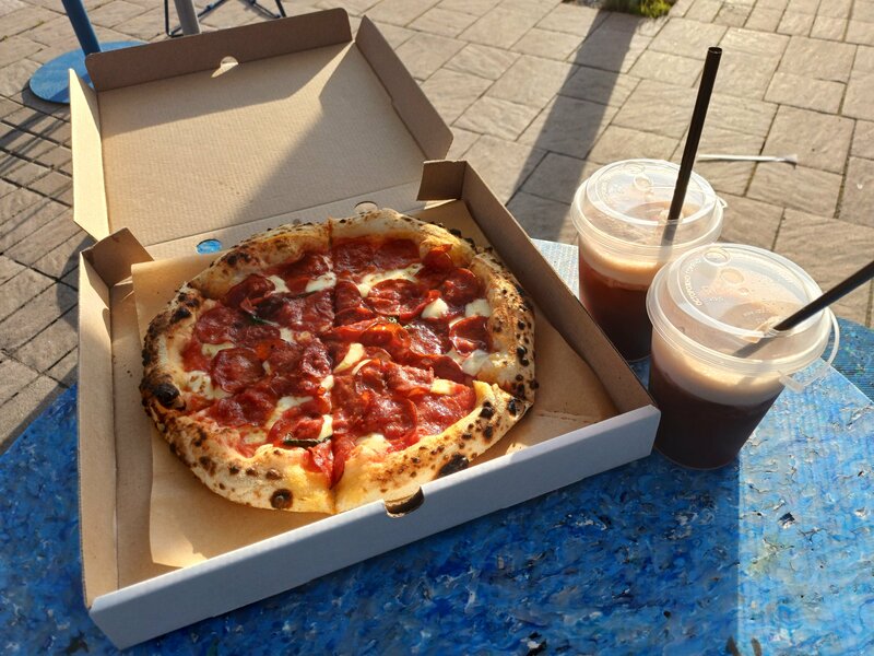 Это шикарно. Серьезно. Я просто в восторге. Никогда не была фанатом пиццы, всегда равнодушно, если больше нечего есть, то поем, а добровольно её заказывать никогда бы не стала. Но это, это - шедевр. За такую цену это просто не описать, жаль что точка так далеко от дома, иначе каждый ужин был бы с ней. Кофе к сожалению очень сомнительный, коктейльи так же, их я тут больше вряд ли возьму, но этот факт никак не омрачил впечатления от этого места, всем супер советую это место, просто лучшее!!!