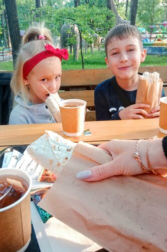 хорошее кафе,где можно перекусить под открытым небом на свежем воздухе в Роще среди трехсотлетних дубов. Готовят шаурму(это самое серьезное из представленного в меню))) при вас,чисто,уютно,никаких разливочных-распивочных🙏,без похабного музона👍 и маргинальной публики. Шаурма вкусная.Спасибо,,мы ушли довольные и накормленные🌯☕