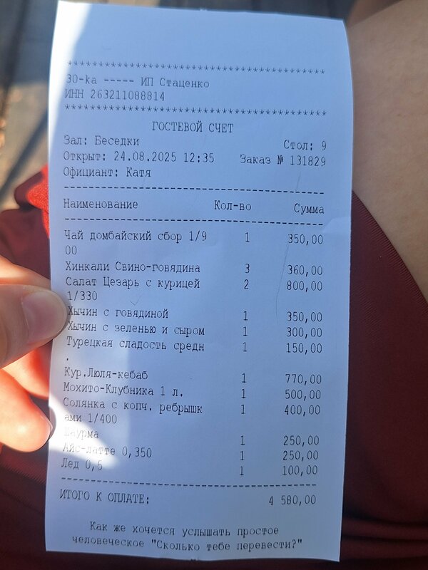 Хычины – это наша любовь. Здесь они тонкие, со сливочным маслом и начинкой в каждом кусочке. Приезжаем сюда не первый раз. Открытием стали огромные хинкали и люля из курицы, всё очень сочно. Шаурма и солянка не произвели ярких эмоций, но тоже прекрасны. Цены приятные
