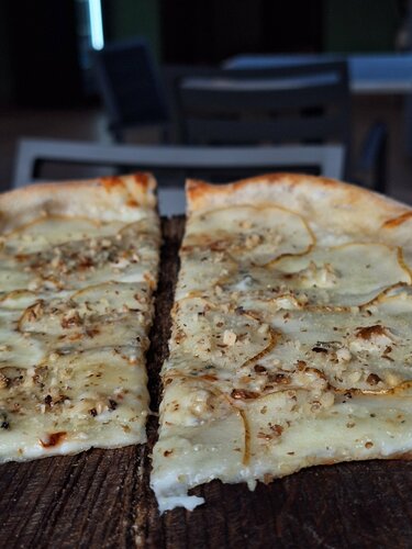 Восхитительная пицца с грушей. Уютное место с большим выбором блюд и посадочных мест. Всё классно, но долго приносят десерты (которые нужно не только порезать перед подачей (блины и вафли), но это не страшно, когда гуляешь и никуда не торопишься