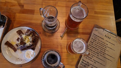 Отличный бар с собственной пивоварней у наб.Крюкова канала. Вечером манящая атмосфера, ребята варят интересное пиво и настойки. Пиво бутылочное или на розлив. Имбирное, берёзовое - на любителя. Пшеничное и тёмное нефильтрованное - вот за чем сюда приходим по пятницам с коллегами. Столик лучше бронить заранее. Прежде всего это бар и тут пьют, про кухню ничего не могу сказать, но выбор закусок приличный. Мороженка на пиве - удивила сладостью и необычным вкусом, отлично сочеталась с сухим яблочным сидром. Имеется бильярдный стол.