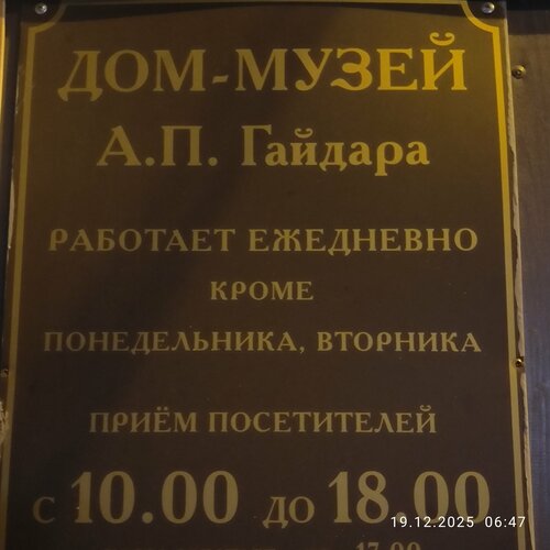Уютный домик сохранился благодаря тому, что в нем жил знаменитый писатель. Гайдара любим с детства. С удовольствием посетили музей и послушали прекрасную экскурсию!