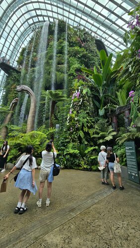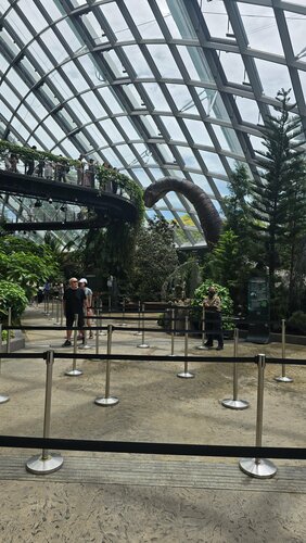 Сады Марина бей. Посмотрели павильон с цветами, заходите в следующую жемчужину парка - Cloud forest. Настоящий тропический рай с огромным множеством различных цветущих и деклративных растений. Смотровые площадки с пешеходными мостами проложены намуоовне семи этажей. Не хотите идти пешком можно вопользовпться лифтами. Сразу же на входе вы упретесь в стену с водопадом. В качестве стилизации под мезозойскую эру вам представять "живые" макеты динозавров на расстоянии вытянутой руки. Понравится и взрослым и детям.