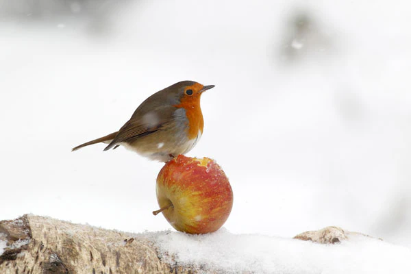 Пичуги с удовольствием будут лакомиться свежим несолёным салом (особенно его любят синицы), сухими ягодами боярышника и рябины, мелко нарезанными яблоками и овощами.