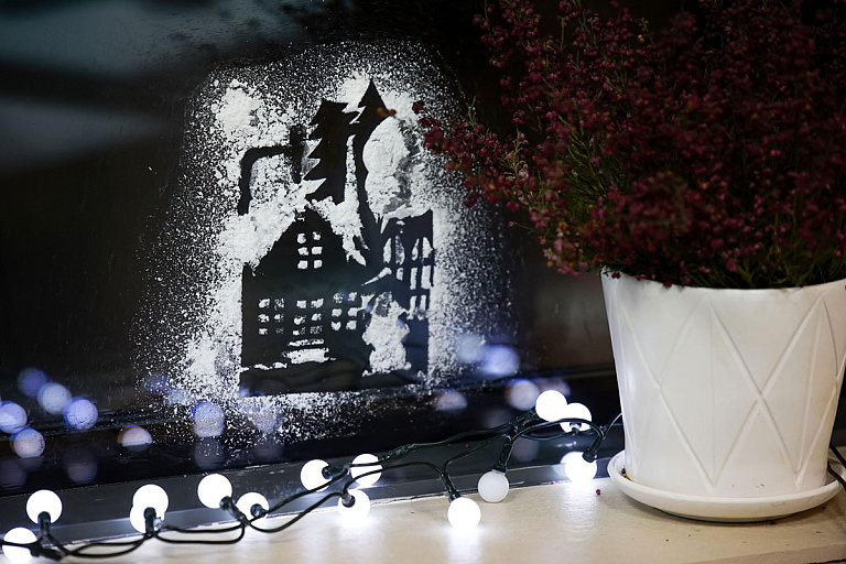 Подоконник — ещё одно пространство, которое заслуживает новогоднего оформления. Здесь можно разместить: