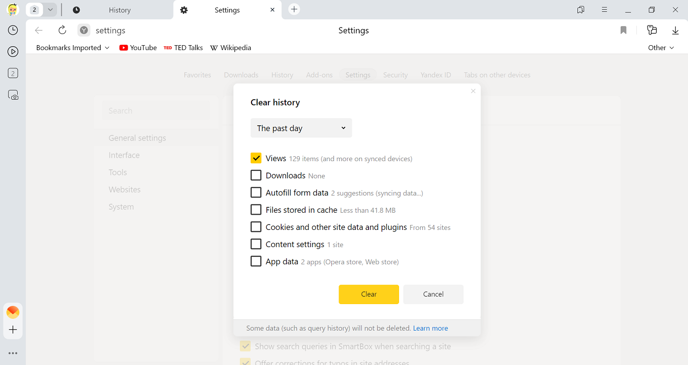 • The history of pages that the user visited on other devices is not displayed in the Yandex Browser interface. However, if after syncing you start entering the address for a site that you visited on another device, the address will appear in your search suggestions. Sites pinned to the Tableau are an exception to this rule.