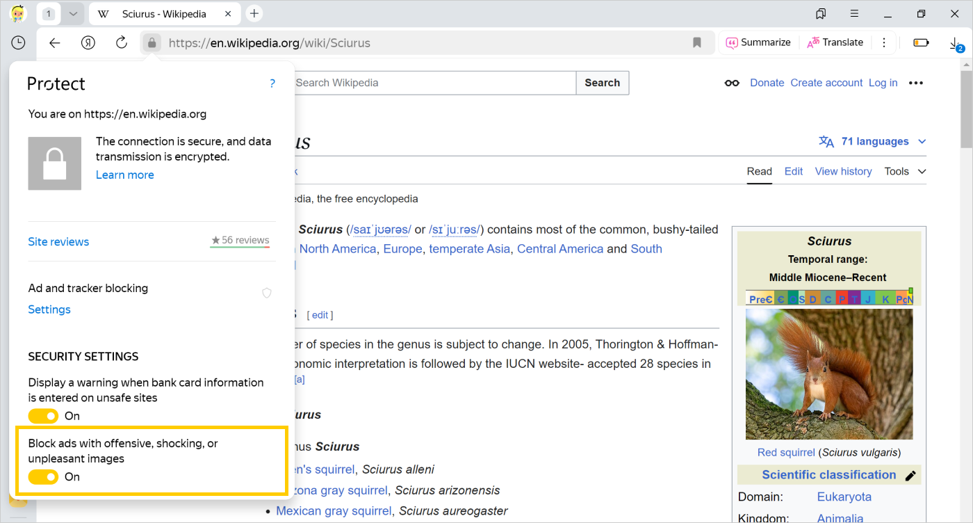 2. Go to the Ad blocker section and disable the Block offensive ads option.
