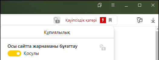 Егер сіз қауіпті мазмұнды бұғаттауды өшіргіңіз келсе, Браузердегі зиянды бағдарламалар мен сайттардың қорғанысын толық өшіру қажет. Біз бұны жасамауға кеңес береміз.