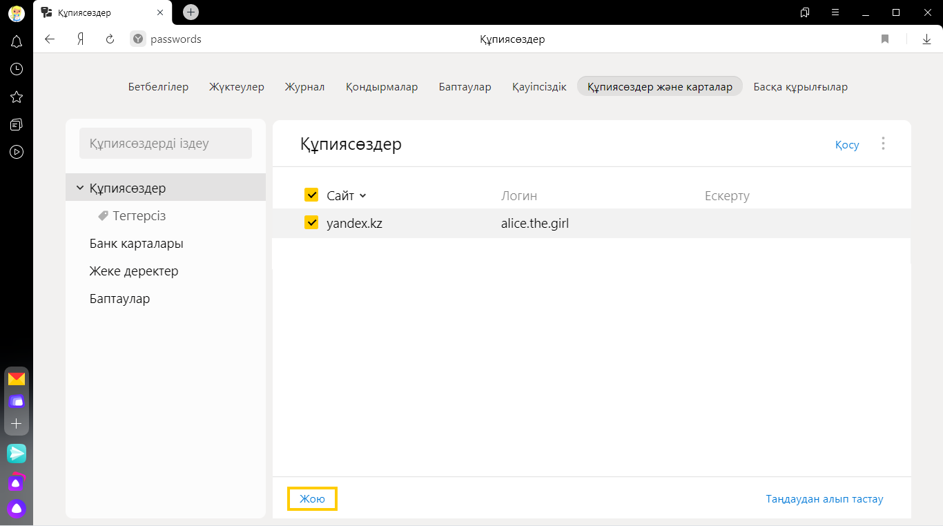 Құпиясөздер менеджері өз құпиясөздеріңізді оңай қарауға, өзгертуге және жоюға мүмкіндік береді.