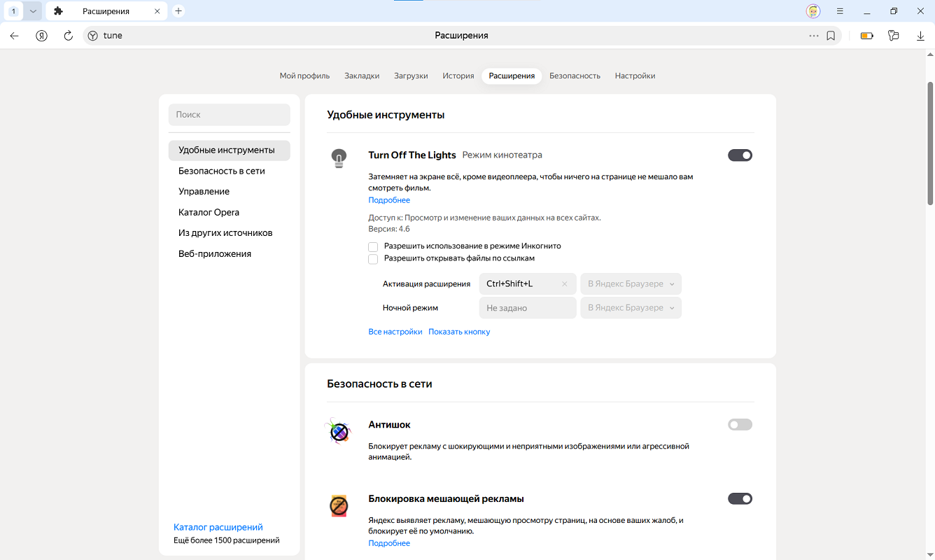 Анализ существующих расширений и изучение предпочтений пользователей позволили отобрать для Браузера наиболее популярные, полезные и безопасные расширения.