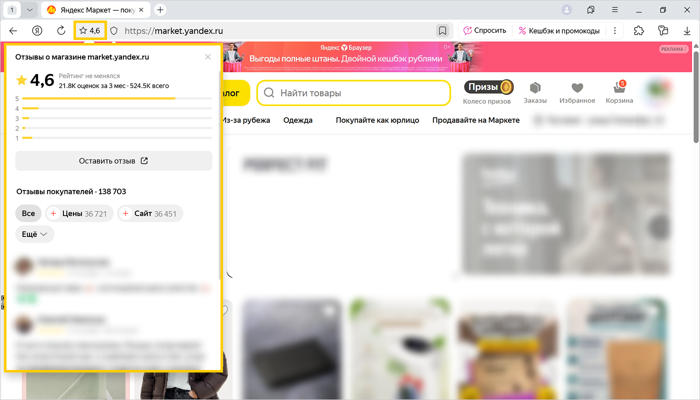 В Яндекс Браузере вы можете оценить работу любого сайта и оставить отзыв о нем. Другие пользователи по общим оценкам и отзывам смогут понять, можно доверять этому сайту и интернет-магазину или нет.