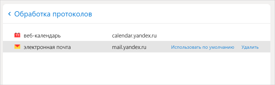 В настройках Яндекс Браузера можно задать веб-службу, которая будет использоваться по умолчанию для электронной почты и календаря.