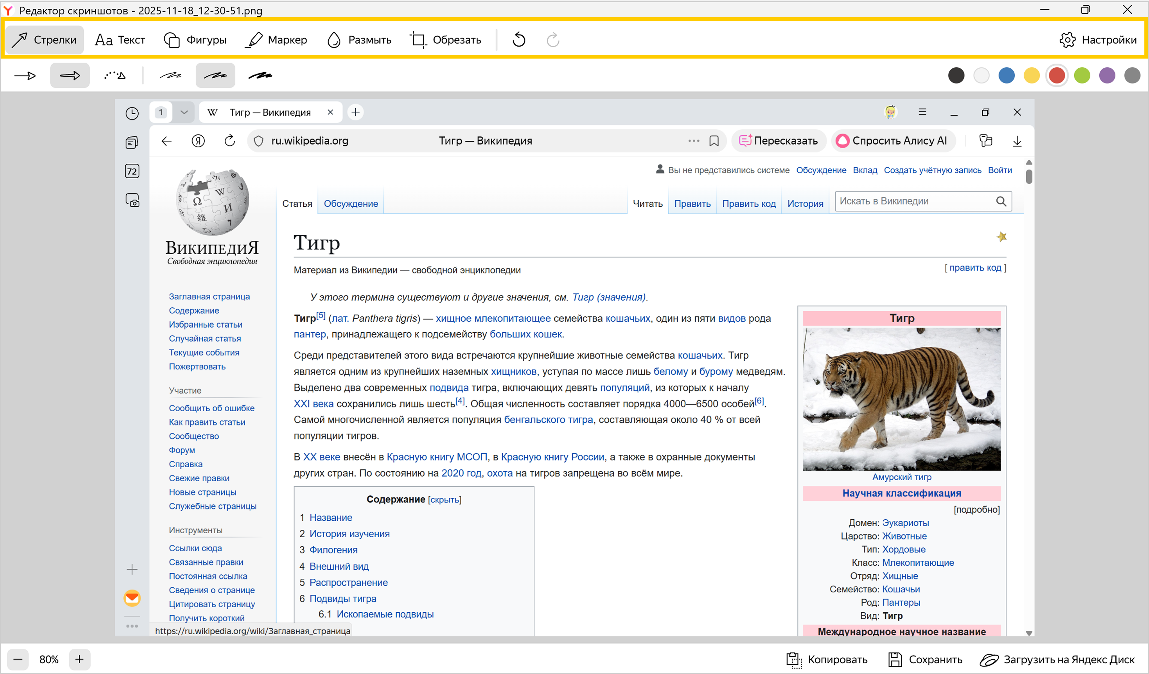 Вы можете обрезать сделанный скриншот, нарисовать на нем фигуры или стрелки, пометить маркером, добавить текстовые надписи, размыть часть изображения.