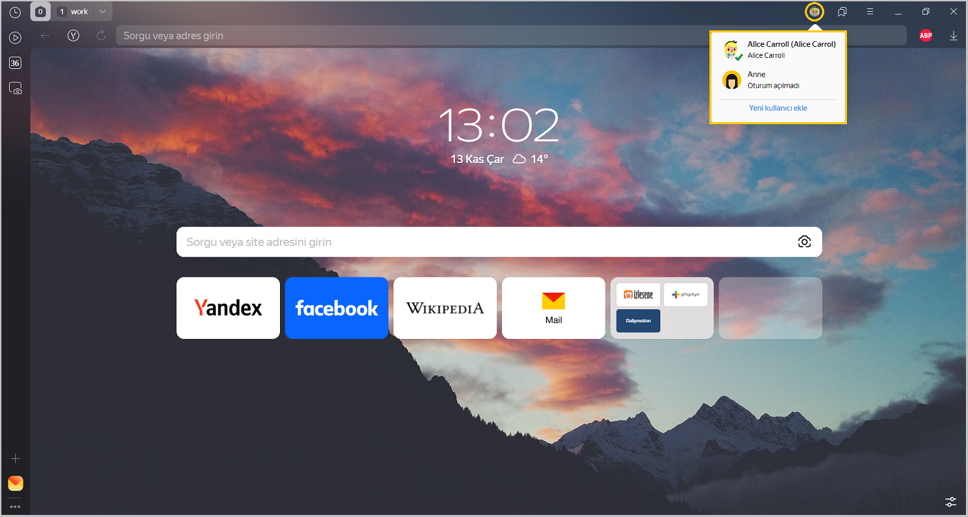 Bilgisayarınızı birden fazla kullanıcı kullanıyorsa Yandex Browser'da kullanıcıların her biri için özel birer kullanıcı profili oluşturmanızı öneririz. Böylece Yandex Browser'daki verileriniz ve ayarlarınız başkalarınınkilerle karışmaz. Ayrıca, kişisel ve iş amaçlı gibi, birden fazla Yandex ID varsa verileri ayrı tutmak için ek profili kullanabilirsiniz.