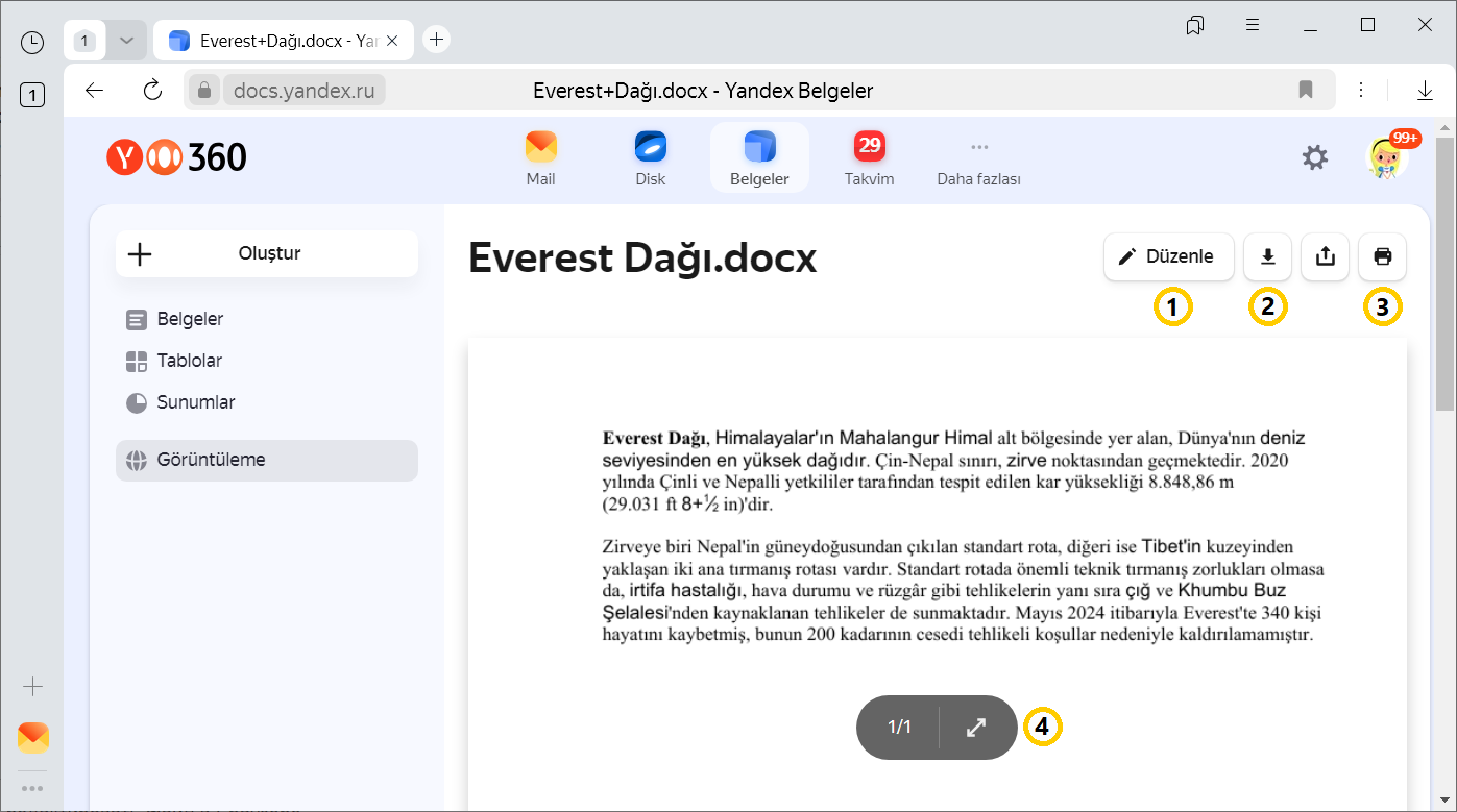 1 — Dosyayı Yandex Browser’da düzenleyin