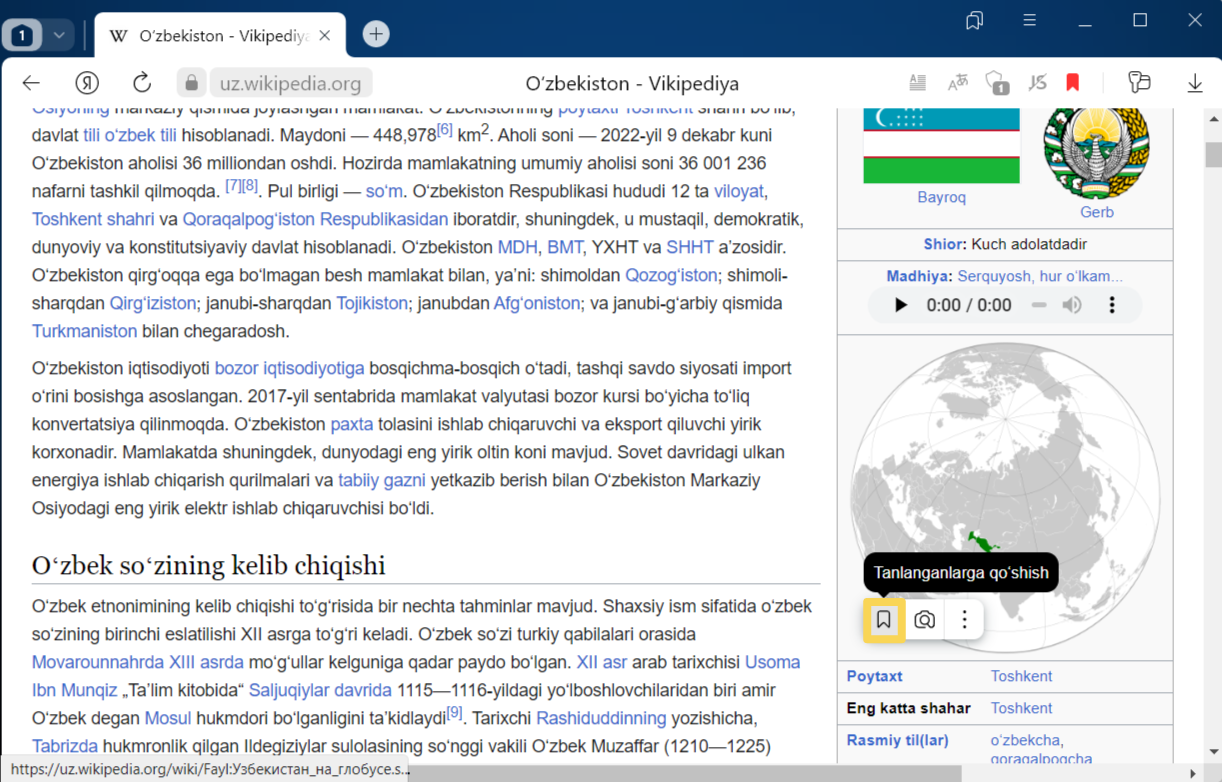 Havolaga sichqonchaning oʻng tugmasi bilan bosing va Havolani xatchoʻplarga qoʻshish tugmasini tanlang. Xatchoʻplar paneli ochiladi.