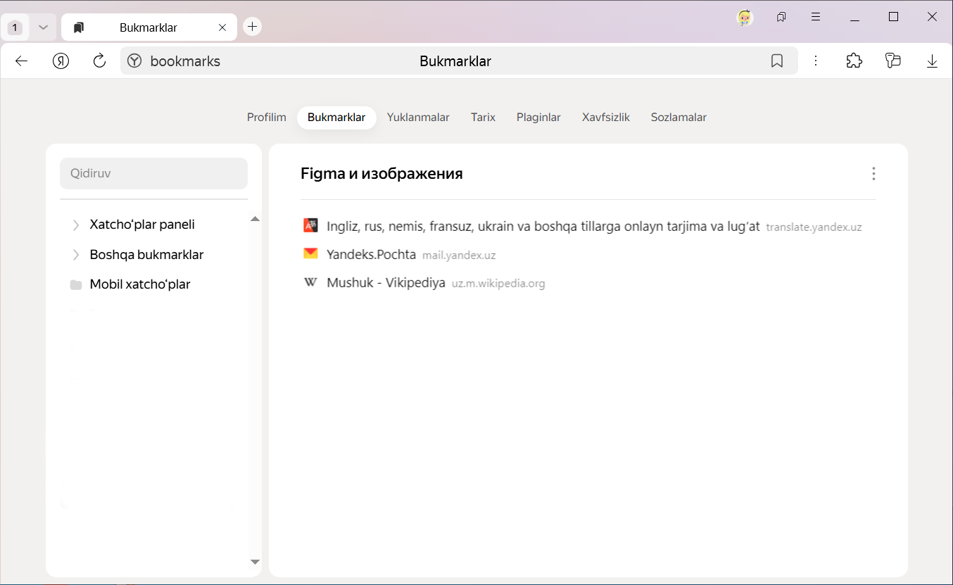 Sinxronlashdan keyin brauzer barcha sinxronlangan qurilmalardan (kompyuter, planshet, smartfon) bukmarklarni chiqaradi.