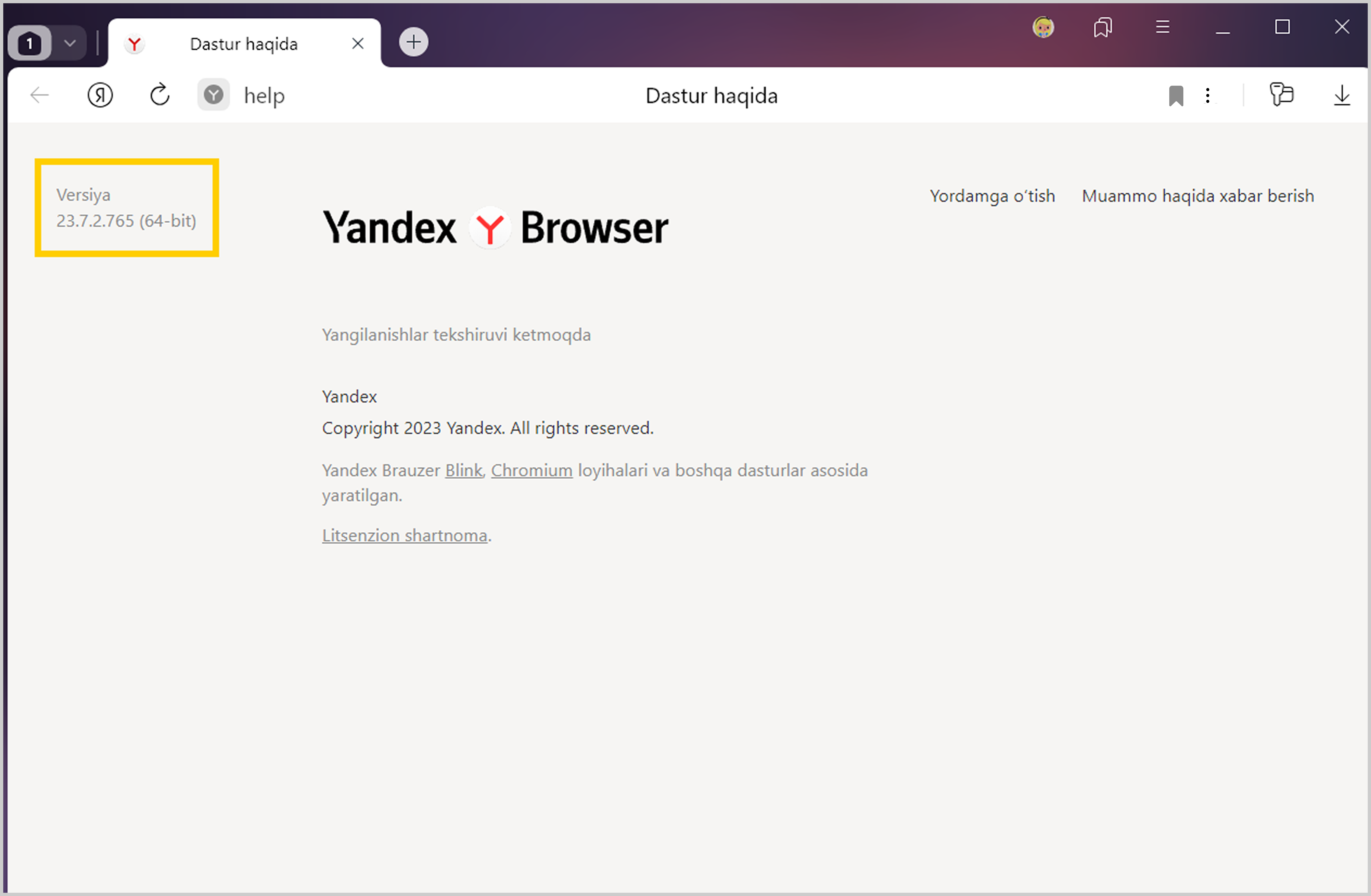 → Yordam → Brauzer haqida tugmasini bosing.