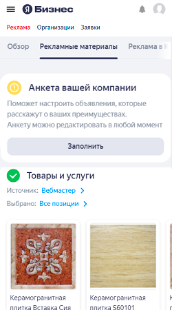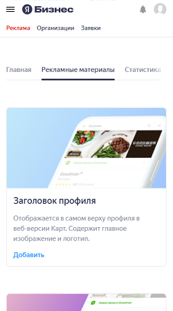 Вы можете создавать и редактировать дополнительные рекламные материалы для продвижения вашей компании. Пользователи увидят их здесь: