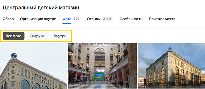 Старайтесь добавлять фотографии, которые наилучшим образом передают обстановку внутри вашего заведения или офиса. Хорошие фотографии входа тоже важны: так клиенты быстрее найдут ваше место.