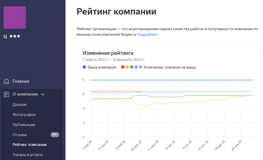 Рейтинг компании — это значение от 1 до 5, которое рассчитывается на основе оценок и отзывов пользователей Яндекса.