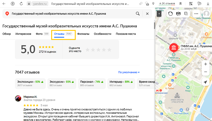 Мы собираем статистику, которая поможет увидеть сильные и слабые стороны вашей компании с точки зрения посетителей. Чтобы посмотреть данные, откройте раздел О компании → Отзывы → Посетители оценили.