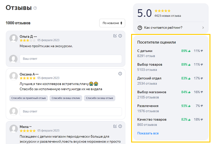 Отвечать на отзывы можно в Личном кабинете Яндекс Бизнеса. Обратная связь, особенно на негативные комментарии, показывает, что вы цените мнение клиентов. Таким компаниям доверяют больше.