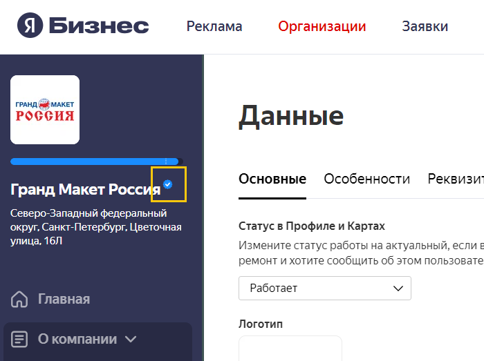 Знак «Информация подтверждена владельцем» (далее — знак) — это синяя галочка рядом с названием вашей компании. Знак получают компании, чьи представители регулярно обновляют информацию в профиле.