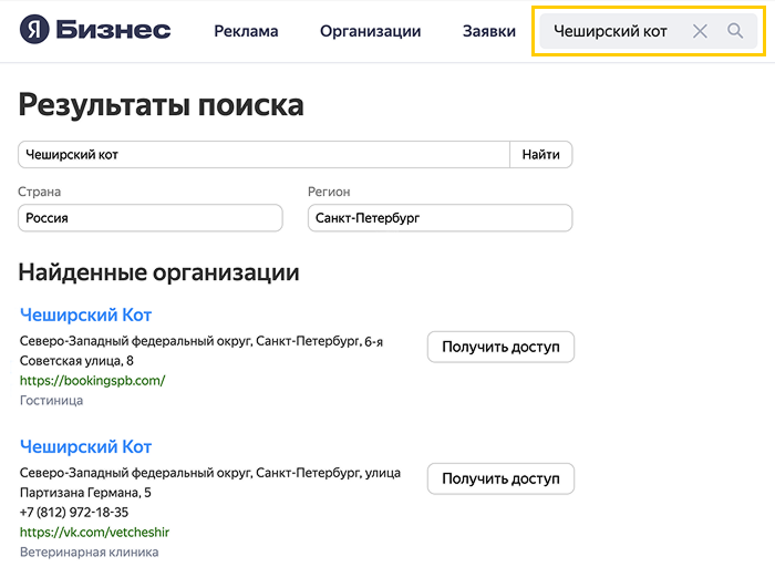 1. Найдите вашу компанию в Яндекс Бизнесе: