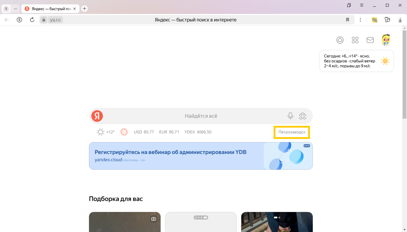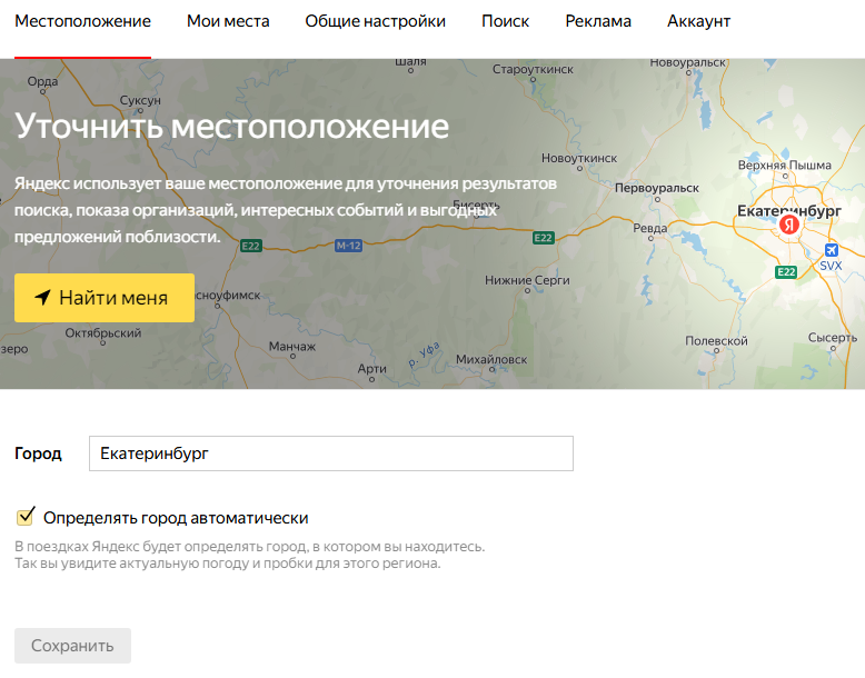 Информация во многих сервисах Яндекса зависит от местоположения пользователя. Например, на главной странице Яндекса вы видите местный прогноз погоды. Местоположение учитывается и в поисковой выдаче: если вы ищете тренажерный зал, Яндекс покажет вам ближайшие спортивные клубы.