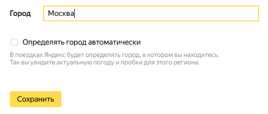 Чтобы сервисы Яндекса учитывали ваше местоположение и показывали полезную информацию (например, местный прогноз погоды, афишу или карту), укажите свой город: