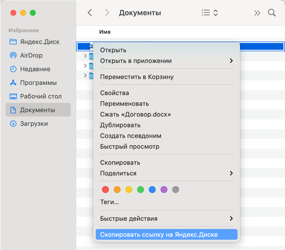 Правой кнопкой мыши нажмите на объект и в контекстном меню выберите Скопировать ссылку на Яндекс Диске.