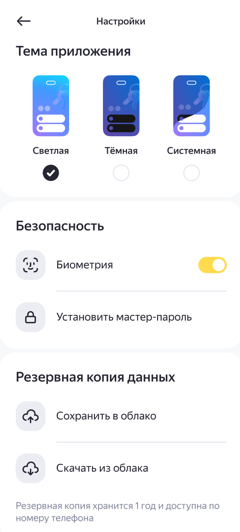 Чтобы отключить вход по биометрии, сначала задайте мастер-пароль — в Яндекс Ключе обязательно должен быть установлен способ защиты.