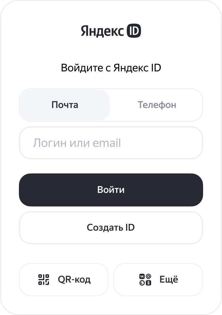 Введите логин, с которым вы регистрировали свой Яндекс ID, и нажмите кнопку Войти.
