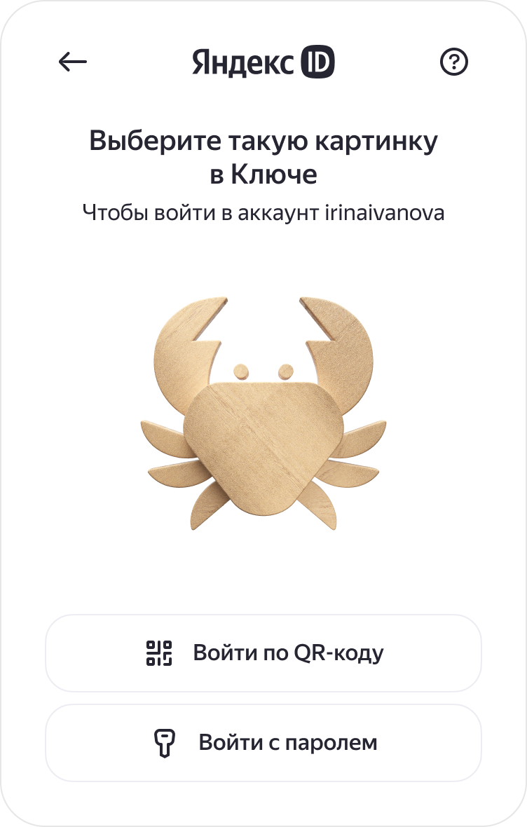 - После ввода логина у вас есть пять минут, чтобы выбрать картинку в приложении Яндекс Ключ. Если время истекло, на другом устройстве нажмите кнопку Обновить картинку.