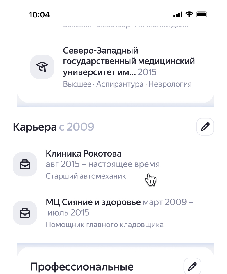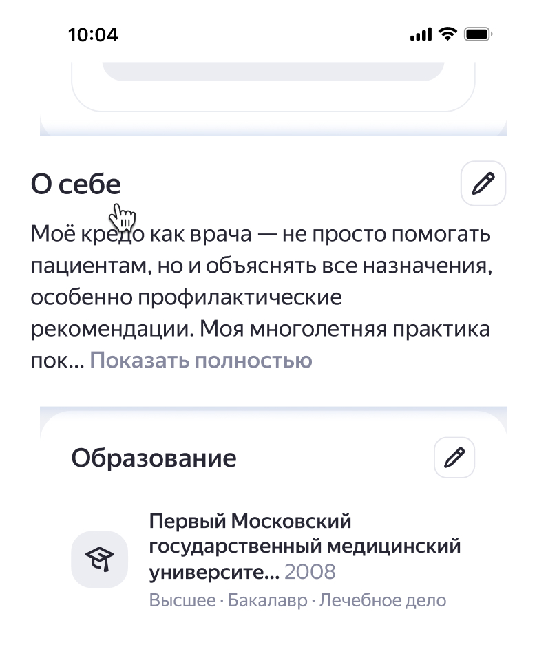 Карточка врача в поиске — это блок с информацией о специалисте в поиске Яндекса. Карточка появится, когда робот Яндекса проиндексирует сайт клиники или организация самостоятельно передаст данные о сотрудниках по инструкции. Это бесплатно.