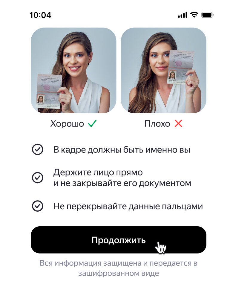 Чтобы подтвердить аккаунт, загрузите фотографию с паспортом. Раскройте паспорт на развороте с паспортными данными и фотографией.