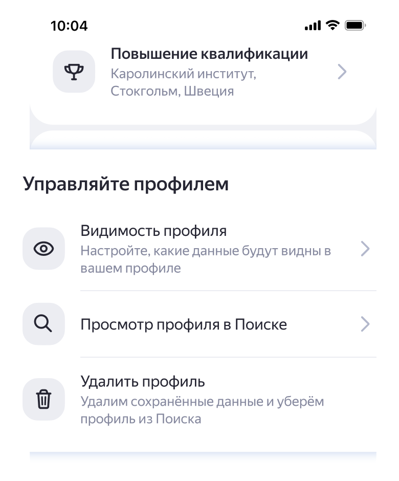Если профиль врача удален, но данные о нем передаются через специальные файлы (фиды) от сайтов с информацией о врачах и медицинских услугах, то карточка врача все равно будет отображаться в поиске без иконки подтвержденного профиля. В ней будут видны только данные, которые поступают из этих источников.