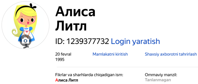 Siz yangi hisob uchun istalgan vaqtda login va parol yaratishingiz mumkin. Login masalan Pochtadan foydalanishga kerak boʻladi.