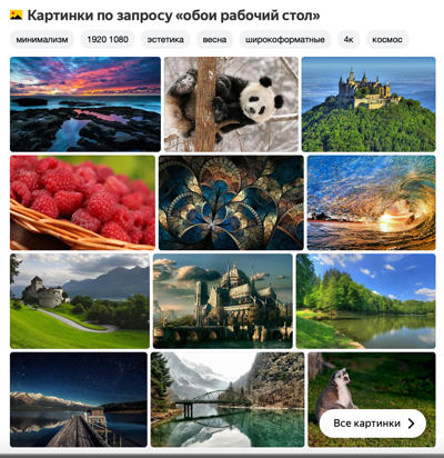 Вы также можете искать обои в главном поиске Яндекса с помощью тематического блока Картинок.