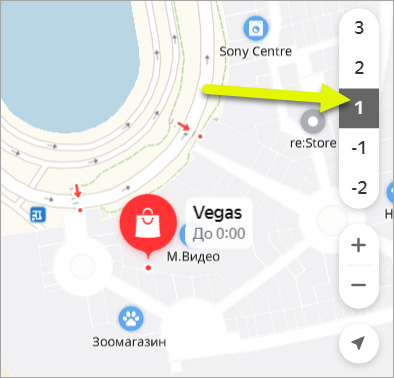 На Яндекс Картах вы можете увидеть поэтажные схемы некоторых зданий, например схемы крупных торговых центров.
