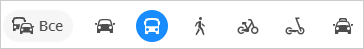 Выберите тип маршрута: автомобильный, пешеходный или велосипедный, маршрут на самокате, общественном транспорте или поездка на такси.