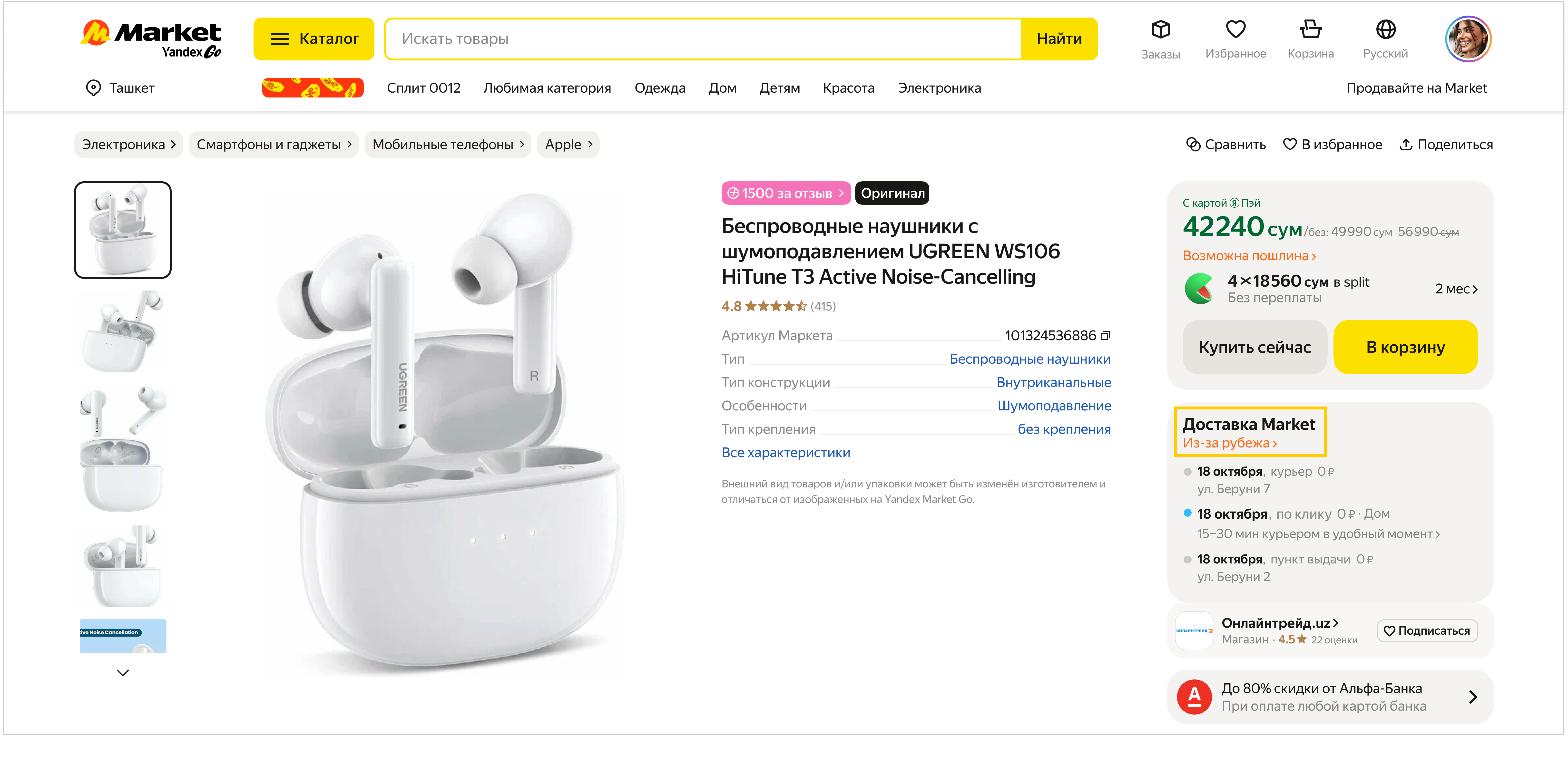 На Market есть товары, которые можно заказать из-за границы с доставкой в Узбекистан. У таких товаров есть пометка Из-за рубежа.