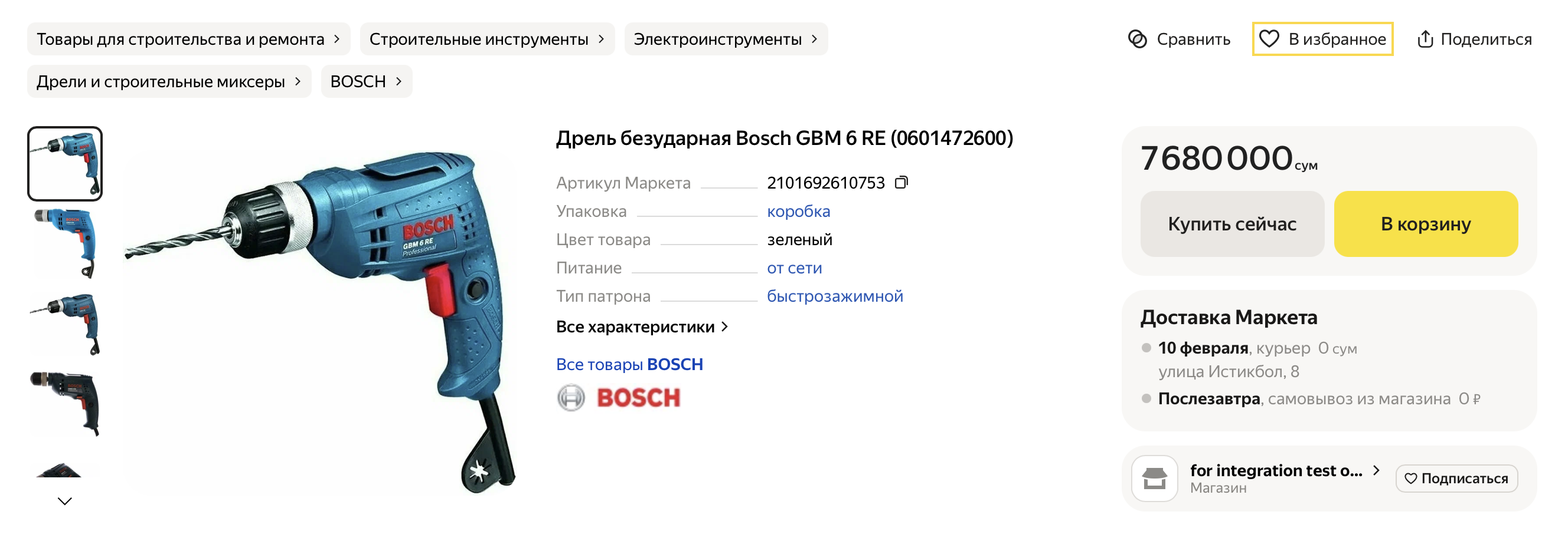 на карточке товара.